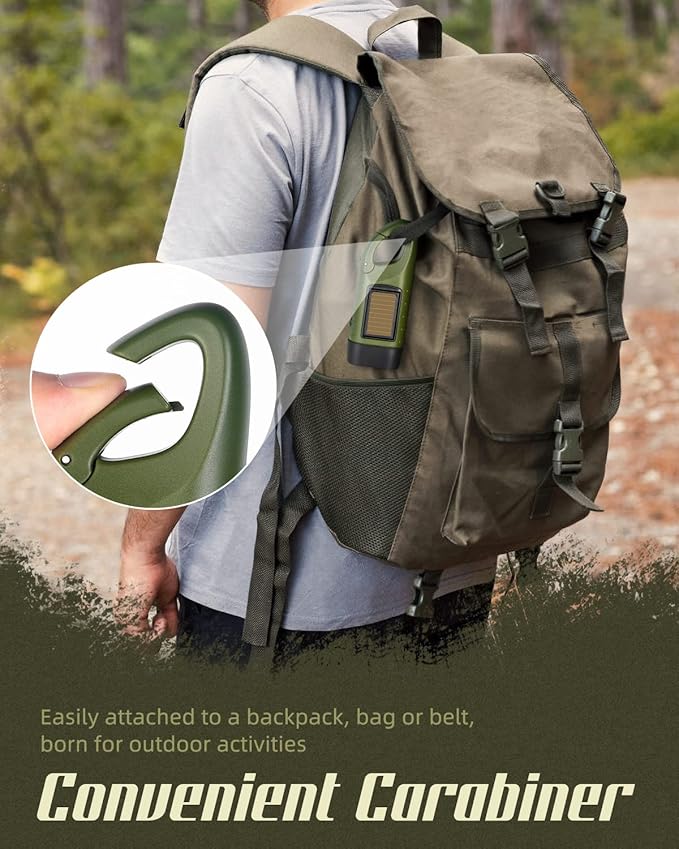 Hand Crank Solar Powered Flashlights,Compact Emergency Rechargeable LED Flashlight Handheld Survival Flashlight,Quick Snap Carbiner Dynamo Flashlight for Outdoor,Sports,Hiking-Army Green