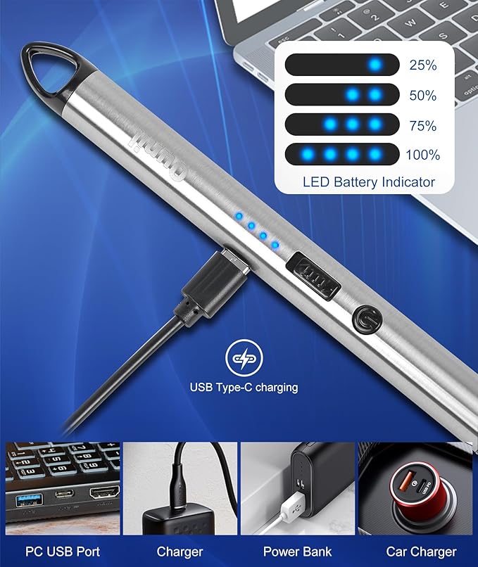 - 【Type-C Charging】No need to replace the lighter! It is durable and has an upgraded C-type charging port. It is very convenient to charge through sockets, computers, and USB power banks. The built-in large-capacity battery can be used 500 times each time it is fully charged. LED power indicator light can remind you to charge in time.