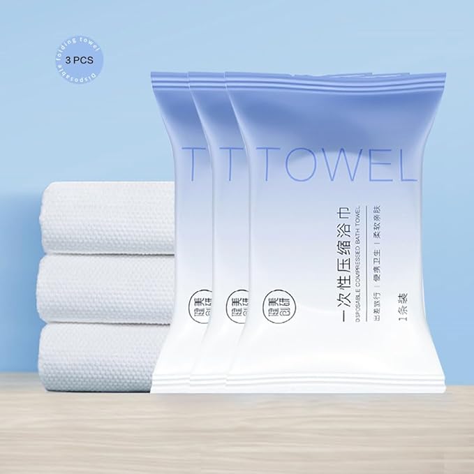 - 【Individually Packaged】Set includes 3 large compressed bath towels, each individually wrapped for cleaner and safer use. Simply place the compressed towel in water for a few seconds and the towel will expand into a large 55 x 27 inch bath towel.Each bath towel is individually packaged for cleaner and safer use.