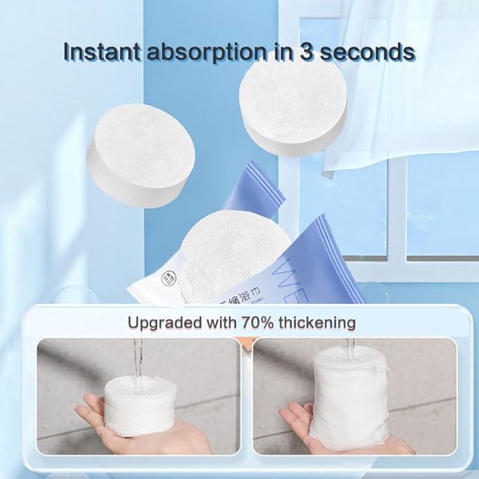 - 【Compact and Portable】The disposable bath towel is designed for convenience. With its compact size, thick compressed bath towel tablets,it easily fits into your travel bag or gym tote. Take it with you wherever you go, whether it's for a beach day or a camping trip.
