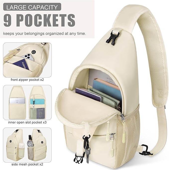 • Well Organized- Multi-pockets: You don’t have to waste time searching for things in a cluttered bag! We have 2 front zipper pockets and a buckle pocket that can fit your wallet, power bank, and tissue. The main pocket has enough space to fit all the essentials you need, it has 13 open pockets can easily store your iPad, cosmetics, or other essentials. Side mesh pocket can store anything you need for easy access. A special hook for hanging your keys! Have everything you need within reach!