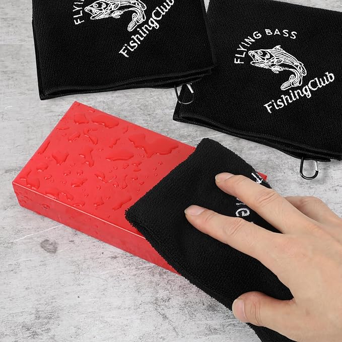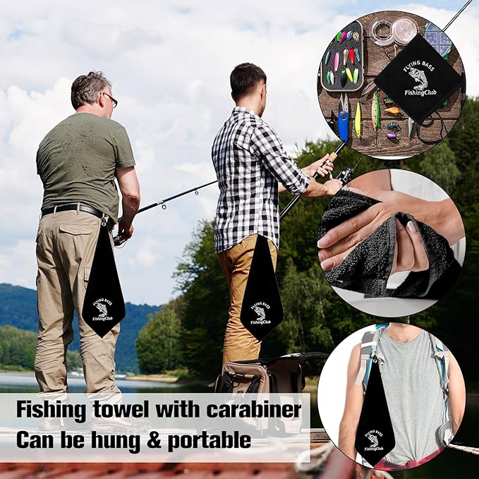 - 2.Fishing towel with clip: Each bait towel comes standard with a metal carabiner. Use the towel clip to keep your fishing towel in place for easy access to dry your hands after handling bait, as well as clean your fishing gear, plush microfiber towel can easy to keep your hands or fishing gear dry and clean.