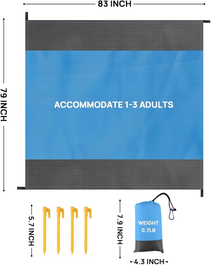 Forbidden Road 83" x 79" Beach Blanket Oversized Waterproof Sandproof Picnic Mat for 1-3 Adults (Blue, 83" x 79" (1-3 Person))