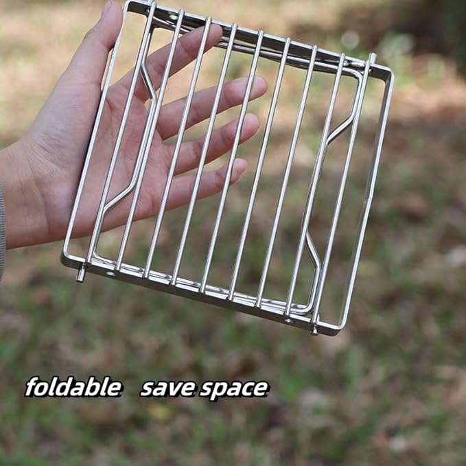 - 【Foldable】Camp Grill with Foldable Legs, Portable Folding Camping Campfire Grill over Fire Stove bracket outdoor, save space