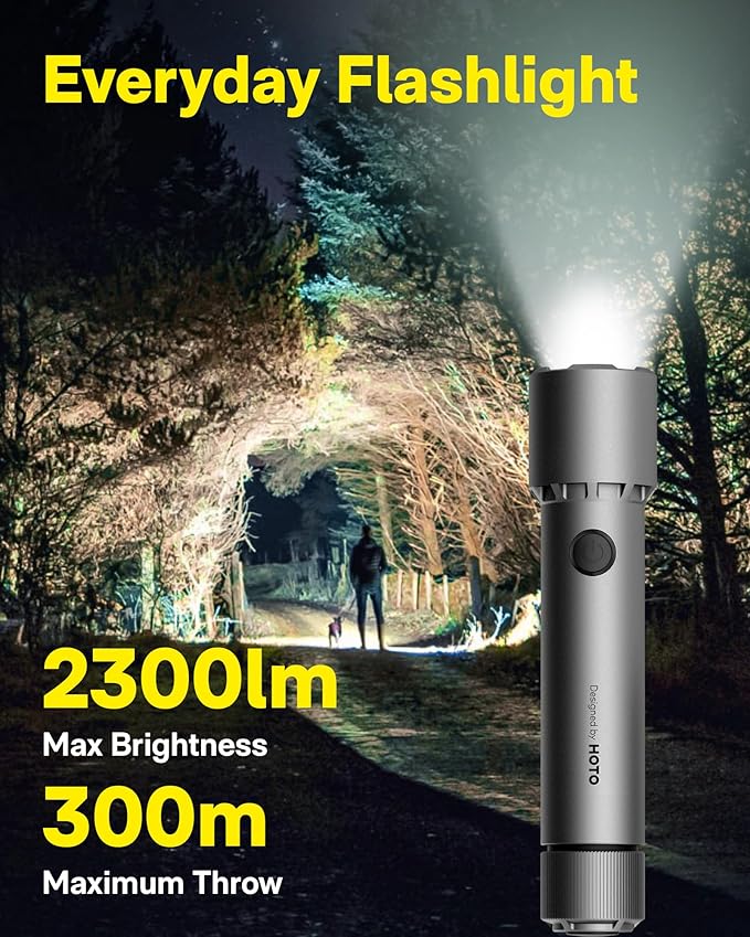- 【DURABLE & RESILIENT】 Constructed from robust aluminum, this HOTO emergency flashlight is designed to withstand the rigors of heavy use. It also features an anti-slip, rubberized clipper for secure handling. Plus, it carries an IP68 rating, offering top-notch resistance against water and dust