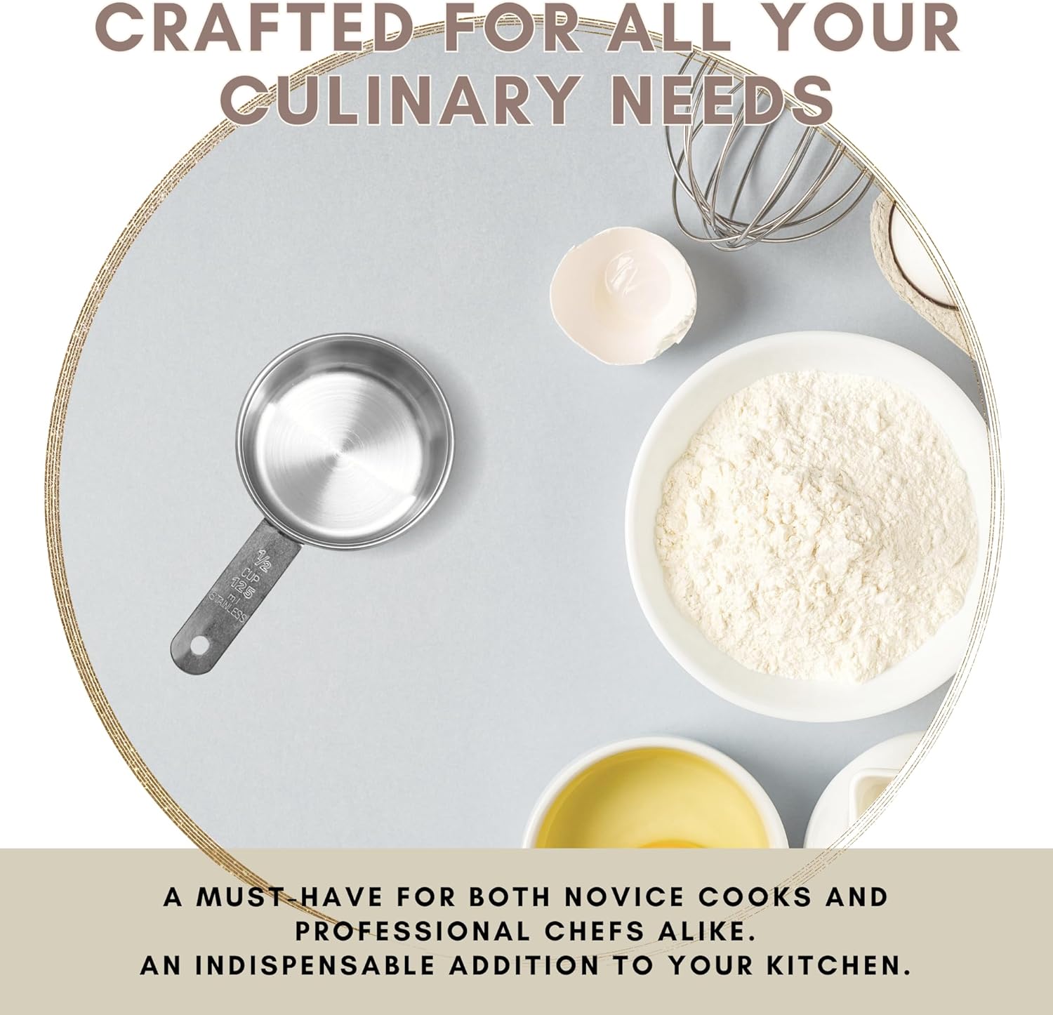 - Precise Measurements - Etched with both 1/2 cup (imperial) and 120 ml (metric) units, this stainless steel measuring cup provides accurate, reliable measurements for every recipe. The markings are permanently engraved into the metal and won’t fade or rub off, even with constant use or dishwasher cleaning. Use it to measure flour, sugar, oil, broth, or rice. It’s also great for portioning dry dog food, prepping meals, and organizing pantry goods with precision.