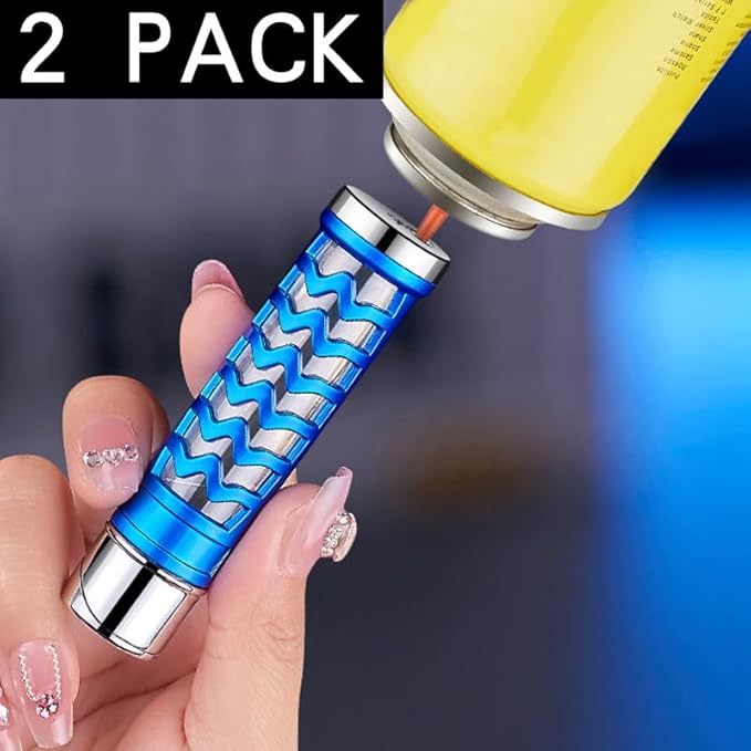 2 Pack Blue Black Cool Butane Torch Lighters,Refillable Adjustable Jet Flame Lighter,Windproof,Gift for Men Candles Camping BBQ (No Butane Fuel)