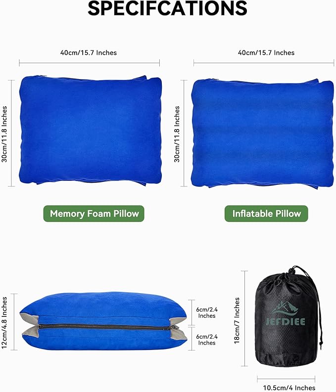 JefDiee Inflatable Camping Pillow with Memory Foam and Washable Cover Camping Gear and Travel Pillow for Airplanes, Camping