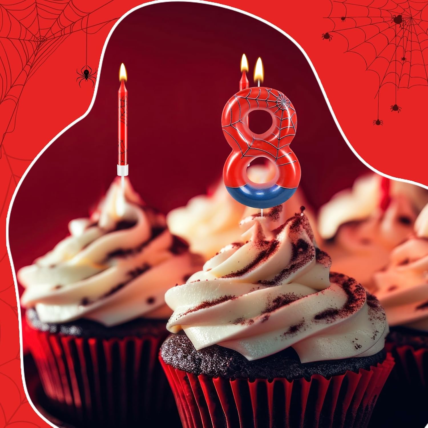 - The Package Includes: You will receive 12 red spider themed birthday candles and 1 number 8 candle, enough for all kinds of party celebrations and everyday use to create a fantastic birthday cake, note: the product may have a color difference, but it does not affect use, the candle will slowly melt as it burns, and it is recommended not to leave it on the cake for more than two minutes