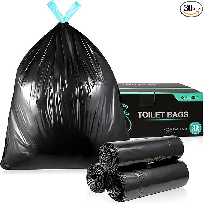 30 Pcs Portable Toilet Bags, 8 Gallon Camping Toilet Bags, Toilet Waste Bags, Leak-Proof Potty Liners Trash Bags for Outdoor Camping Toilet Bucket,Traveling, RV Trip