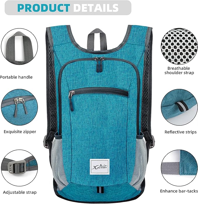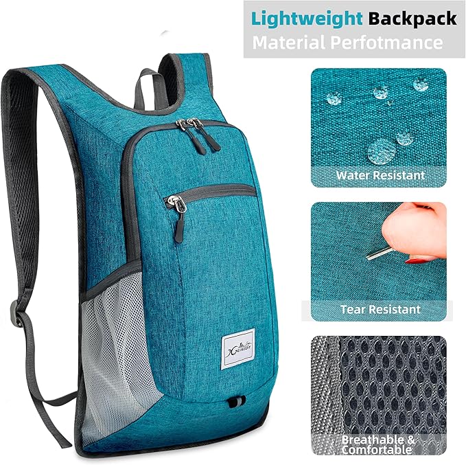 Hiking Backpack 15L Small Travel Backpack Lightweight Daypack Foldable Hiking Backpack Packable Camping Hiking Backpack for Women Men (Teal Blue)