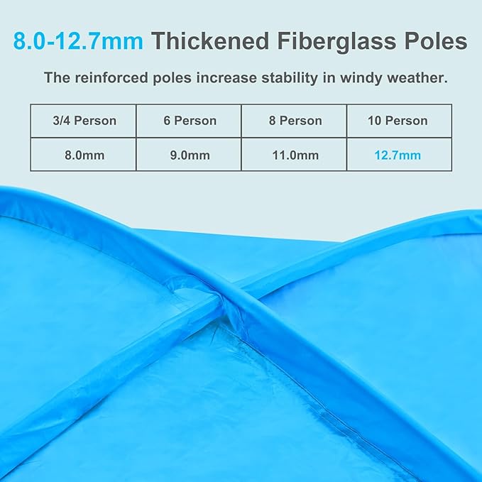 - Upgraded & Durable Design: The SILVER COATED Fabric ensure that the coverage area of Anti-UV effects, keeping you and your family away from the damage of the strong sunshine. 12.7mm IMPORTED fiberglass frame is safer, more durable and rust free, which support tent stably stand by itself and keeps shape after long time use