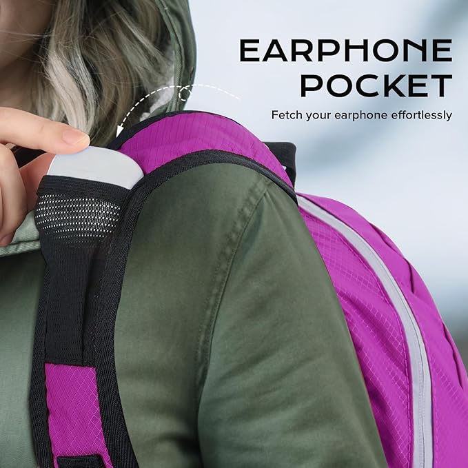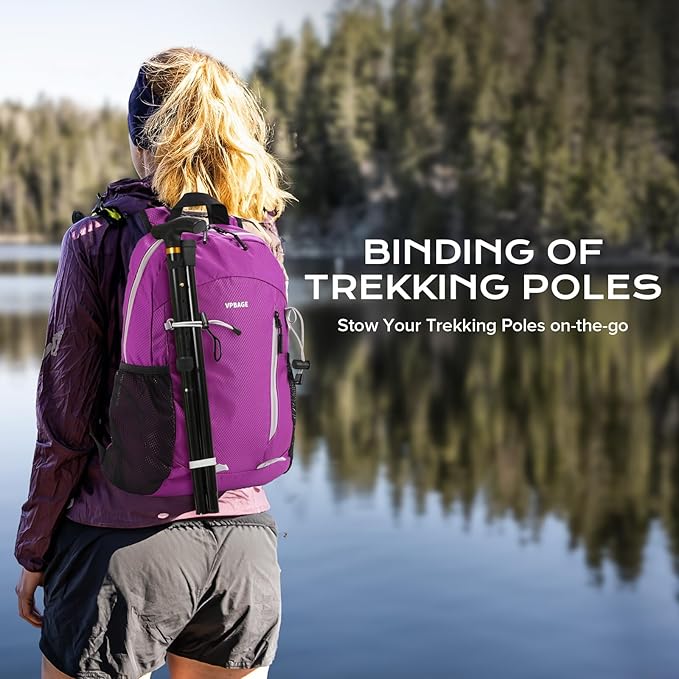 15L Highly Water-resistant Hiking Daypack, Small Backpack Travel Outdoor, Lightweight Day Pack with Tool Loops(Purple)