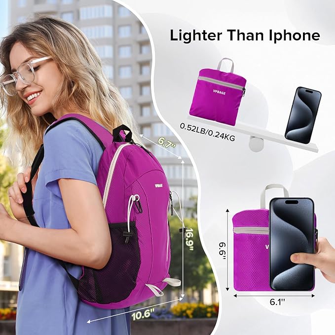 - Foldable into a Pouch and Compact : When not in use, hikers can easily fold the small backpack into its inner pocket, as small as a palm, which can be easily packed into your bag or suitcase, providing additional storage space to carry extra gear or souvenirs
