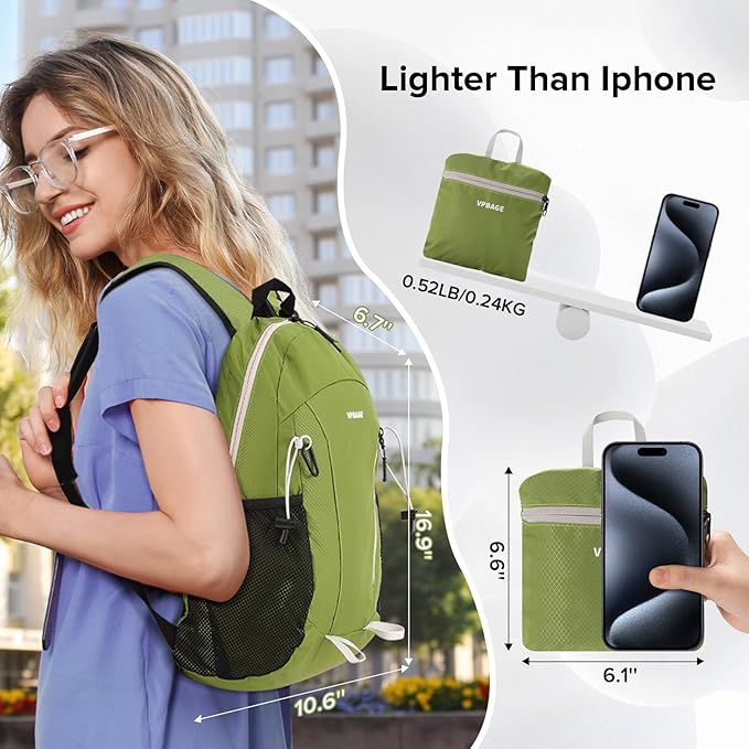 - Foldable into a Pouch and Compact : When not in use, hikers can easily fold the small backpack into its inner pocket, as small as a palm, which can be easily packed into your bag or suitcase, providing additional storage space to carry extra gear or souvenirs
