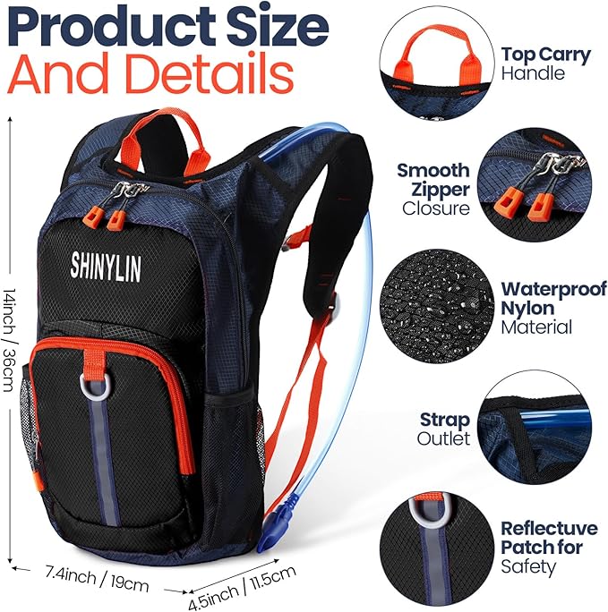 - Wide Range of Applications: this compact children's hiking hydration backpack is lightweight and stable, making children feel relaxed and happy during outdoor activities, such as cycling, camping, running, jogging, climbing, walking and hiking