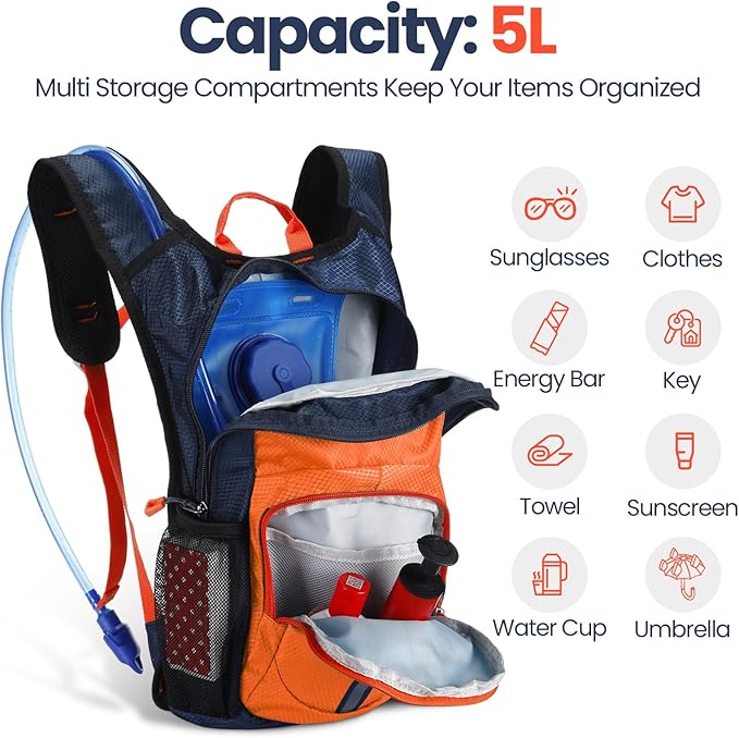 - Wide Range of Applications: this compact children's hiking hydration backpack is lightweight and stable, making children feel relaxed and happy during outdoor activities, such as cycling, camping, running, jogging, climbing, walking and hiking