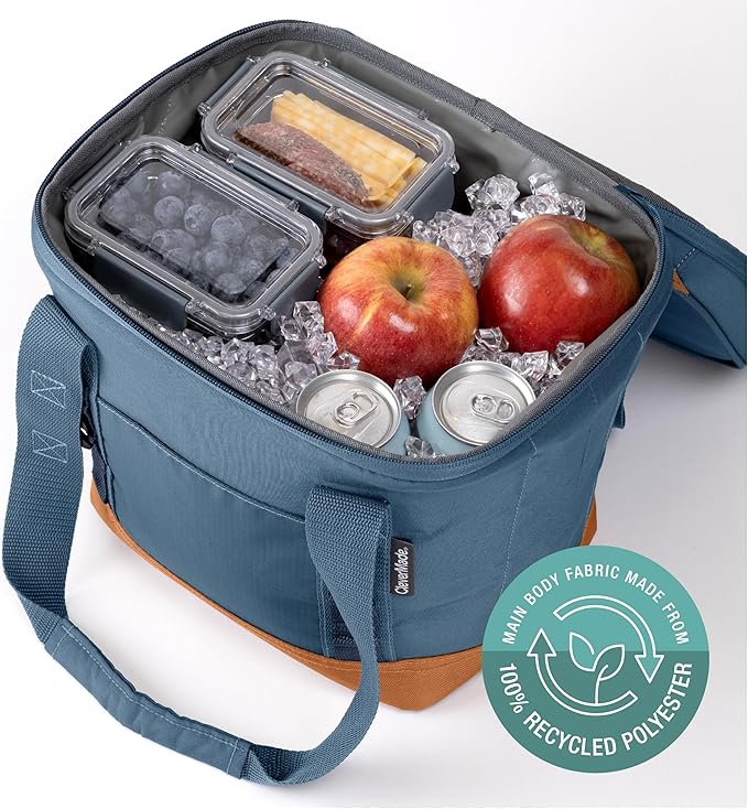 - 100% RECYCLED POLYESTER AND LEAKPROOF LINER: Main body fabric made from 100% recycled polyester. Our picnic cooler is built with sonic welded, leakproof PEVA liner for a durable eco-conscious solution.
