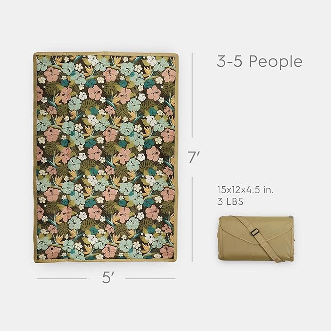 Little Unicorn Outdoor Family Picnic & Beach Blanket, Water-Resistant, Compact Fold, Large Size, 5 x 7 feet, (Hibiscus)