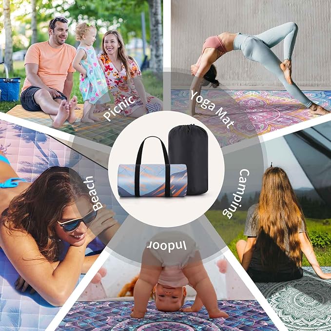 - 【Wide Applications】This picnic mats is not only suitable for outdoor picnic places such as parks, lawns, and beaches but also an ideal companion for camping. Whether it's a family picnic, travel, vacation, or concert, it can bring you a comfortable and convenient experience. Additionally, it can also be a beautiful gift for couples, moms, adults, or girls.