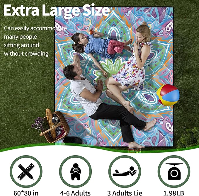 - 【Extra Large Picnic Blankets Size】 Our picnic blanket has an unfolded size of 60*80 inches, which is spacious enough to accommodate 4-6 adults. Whether you're spending quality time with family, friends, or loved ones, this wide area will provide enough space for everyone to enjoy the outdoor picnics.
