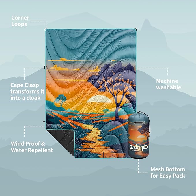 - Warm Retention: Filled with premium high-loft filling that could store air and thus greatly keep the heat, zzlamb puffy camping blanket enhanced heat retention so that can make you stay cozy even though in outdoors and indoors especially during nighttime