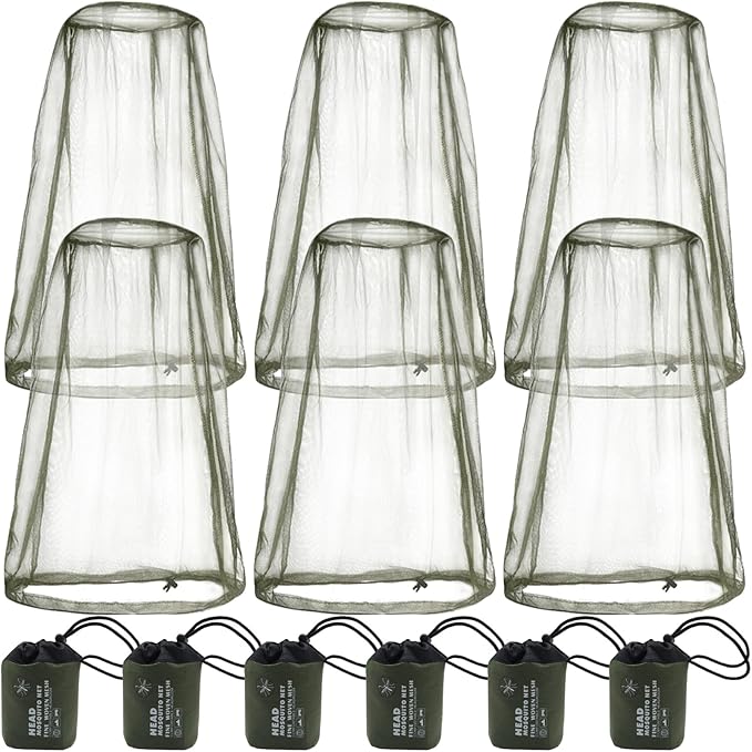 6 Packk Mosquito Covers Wearable Head Net Face Mesh Protecting Net Mosquito Fly Insects Bugs Preventing for Outdoor
