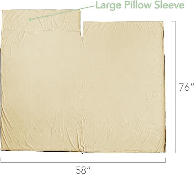 - FULL LENGTH ZIPPER – Our unique design incorporates a zipper that runs down one side and across the bottom of the liner. This allows you to use it as large sheet or light blanket in warmer weather.