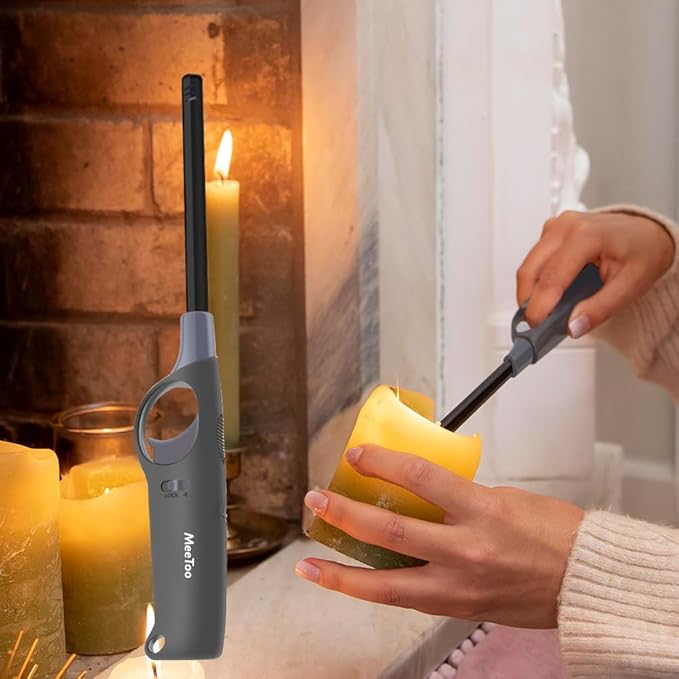 - 【Safety and User-friendly Design】: The candle lighter with Child-proof switch at the on/off button protects children from igniting accidentally.It is also odorless and non-toxic, making it safe for use around children and pets.