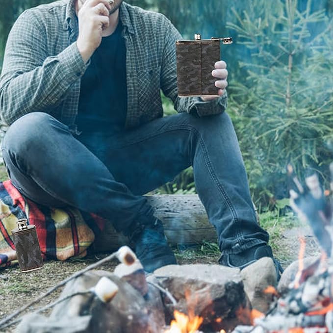 Hip Flask Gift Set, Hip Flasks for Liquor for Men with camouflage Leather Cover, 8 Oz Hip Flask, 18/8 Stainless Steel Hip Flasks, Flasks for Liquor for Men Gift Box