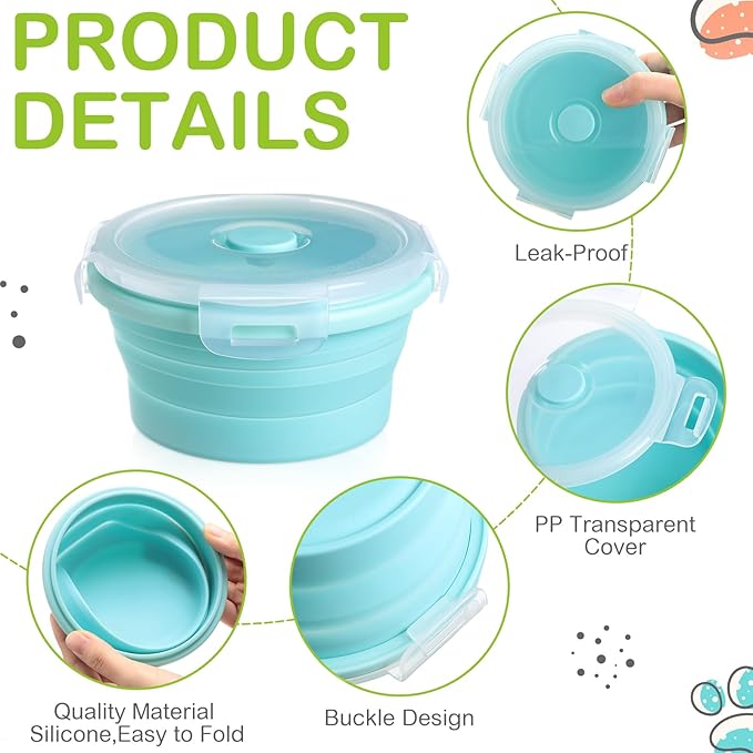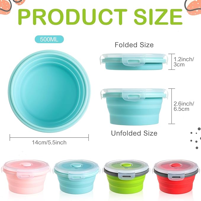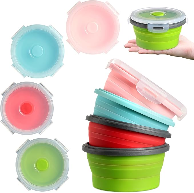 - Quality Silicone Material: crafted from quality silicone, these silicone collapsible bowl with lids are both safe and durable; It can be applied to hold milk powder, cereal, dry fruits, snacks, cookies, sweets, breakfast items, fruits, vegetables etc.; They are easy to clean, dishwasher safe, and promote healthy use; Suitable for office, camping, road trips and more