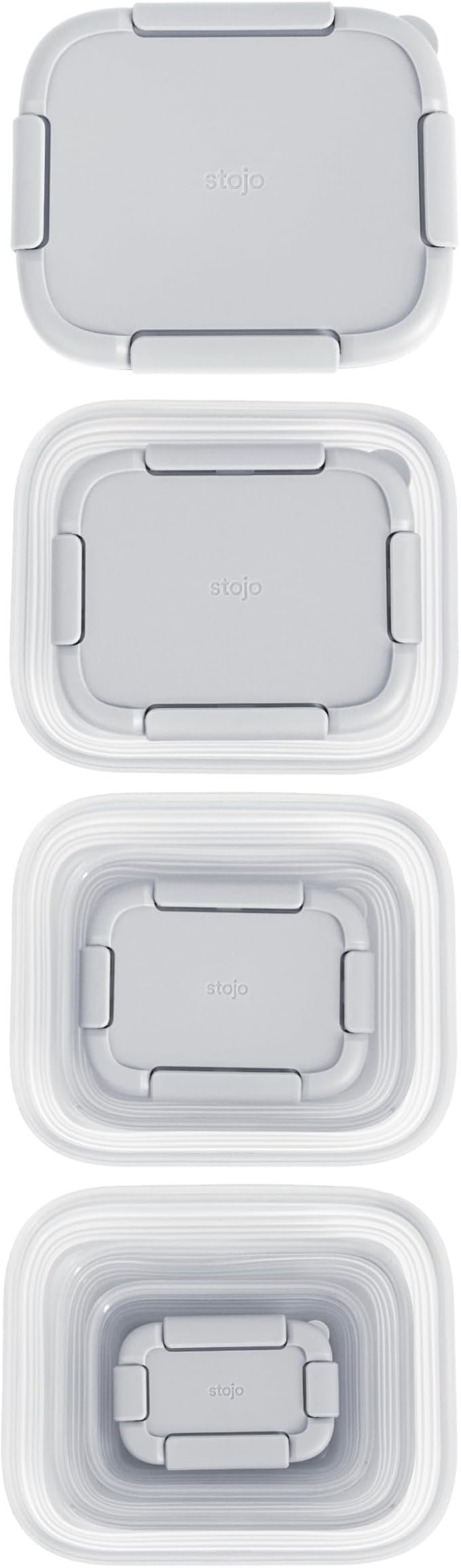 Stojo Nestable Collapsible Food Storage Container - Set of 4, Cashmere - Leak-Proof Airtight Seal Made With Food Grade Silicone For Meal Prep, Lunch Box, Pantry Organizer - Microwave & Dishwasher Safe