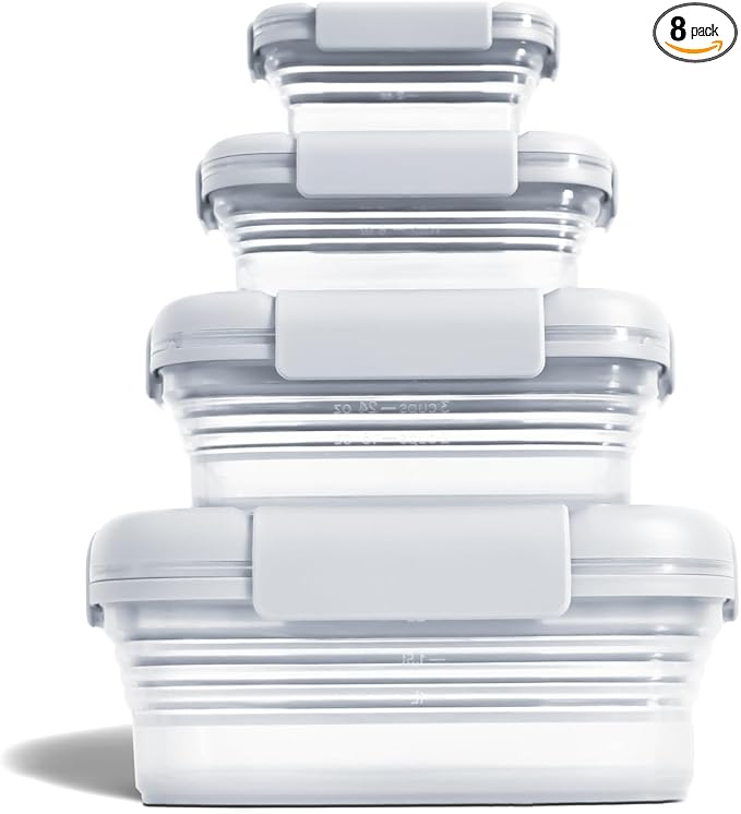 - Space-Saving Magic: Transform your kitchen with these collapsible food storage containers that shrink to less than 2 inches when not in use—convenient for maximizing pantry and cabinet space!