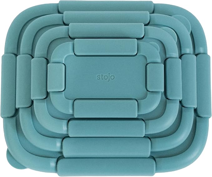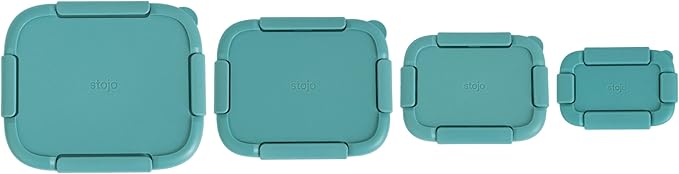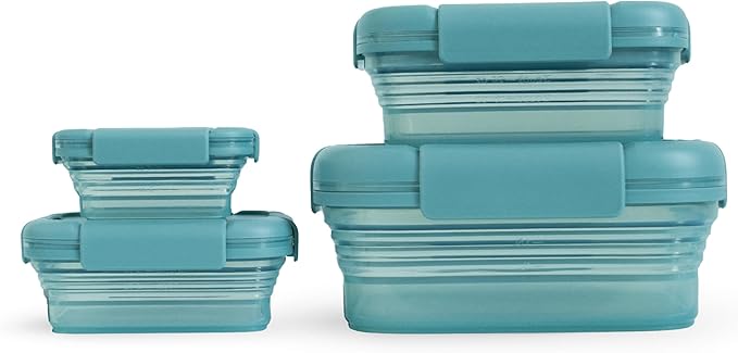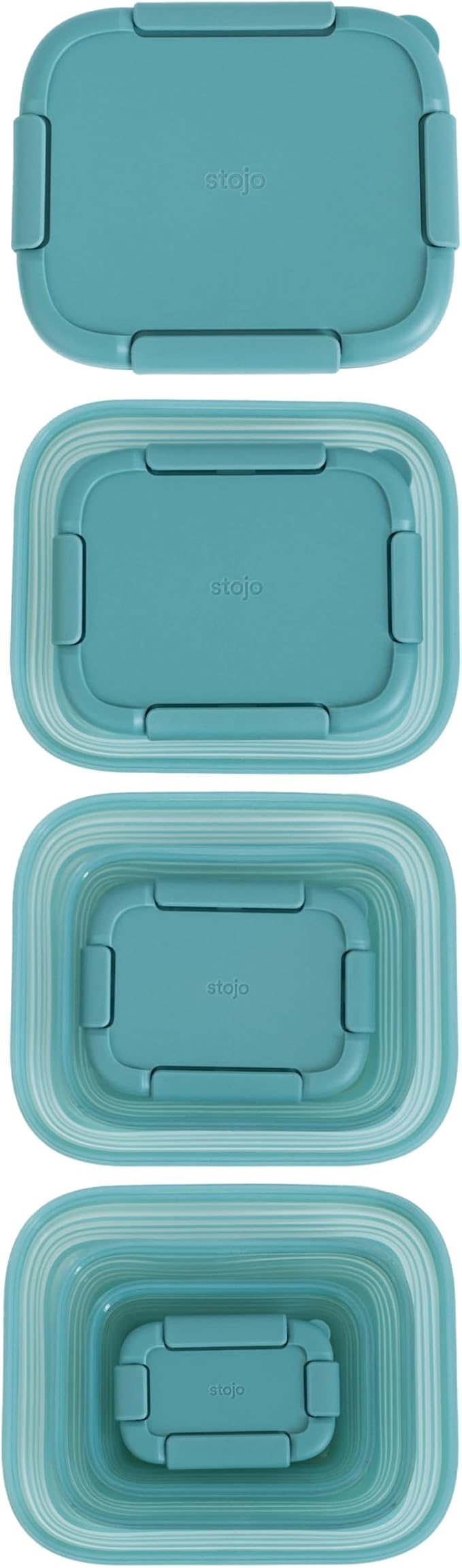 Stojo Nestable Collapsible Food Storage Container -Set of 4, Eucalyptus- Leak-Proof Airtight Seal Made With Food Grade Silicone For Meal Prep, Lunch Box, Pantry Organizer - Microwave & Dishwasher Safe