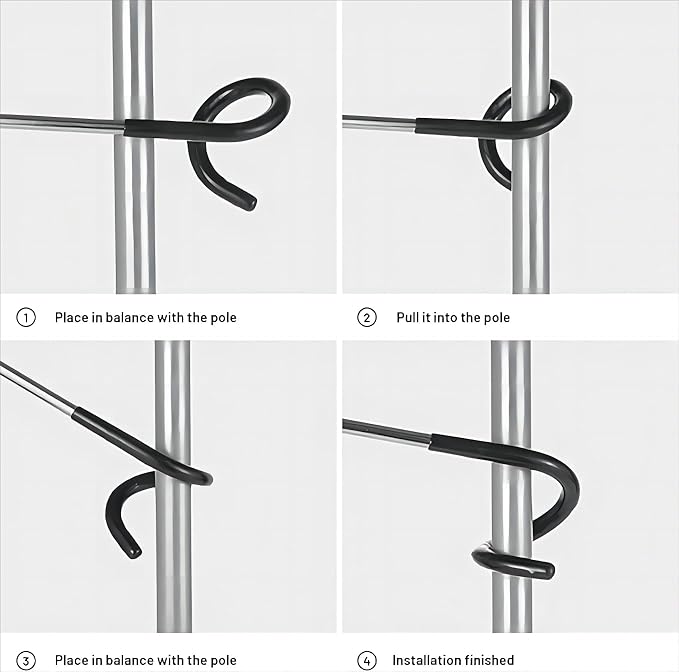 - 【Package Include】The package have 3 Sizes, includes 2 Large S hooks ,2 small S hooks, 2 mini S hooks and Oxford cloth waterproof storage bag,Large S hooks are suitable for poles less than 25mm (1 inch) in diameter, thick branches, water pipes, patio railings, etc. Small S hooks are suitable for poles less than 13mm (0.5inch) in diameter, tent poles, thin branches, garden railings. Mini S hooks are suitable for various scenarios