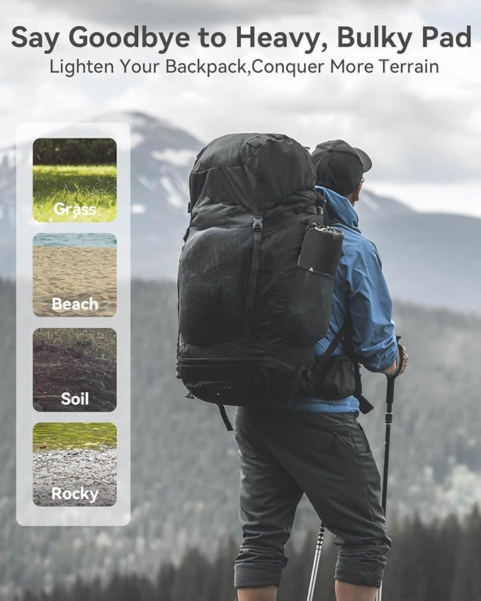 - Built to Last, Crafted for Comfort: Constructed from polyester pongee with TPU lamination technology, this camping mattress pad is waterproof, compact, durable, and resistant to wear and tear. It's perfect for family camping, hiking, backpacking, tent camping, van camping, and can also serve as a comfortable air bed for guests at home.