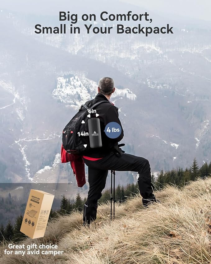 - Big on Comfort, Small in Your Backpack : Perfect for camping, hiking, backpacking, this sleeping pad is ready for anything. With a built-in ergonomic pillow contours to your neck, this pad will providing a bed-like comfort, so you can enjoy more time outdoor with family and friends.
