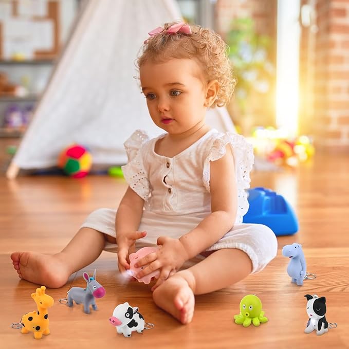 - 【LOVELY DESIGN】-This animal flashlight has different cute animal shapes, such asGiraffe Cow Pig Hippo Octopus Spotted Puppy Horse Whale Little donkey Keychain. Your kids will love these keychain flashlights, which are a nice gift for teens, kids, boys, or girls.