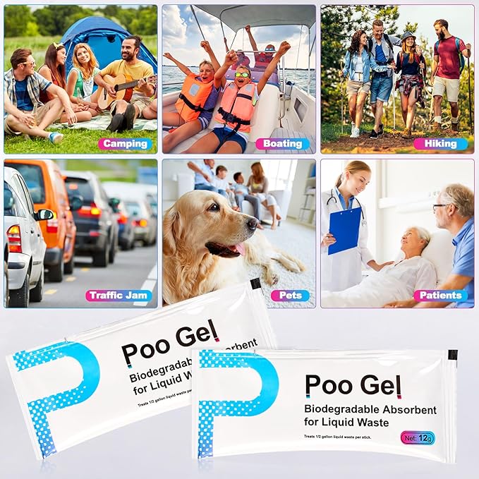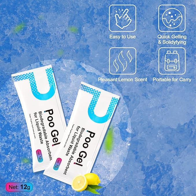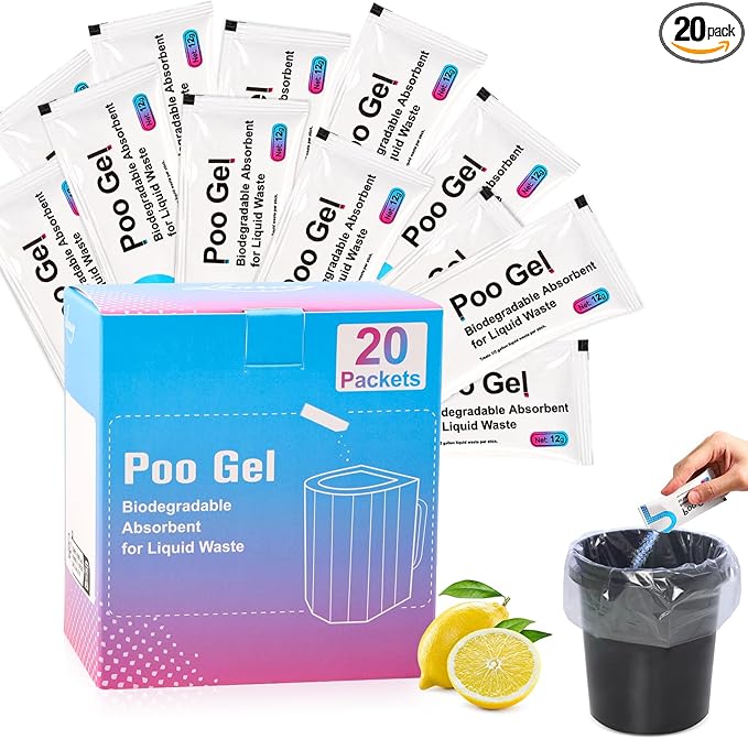 20 Packets 12g Poo Gel for Portable Toilet, Camping Toilet Gel Powder for Potty Bags, Super Eco Absorbent Gel, Portable Toilet Gel Packets for Outdoor Recreation Camping Essentials (20 Packets)