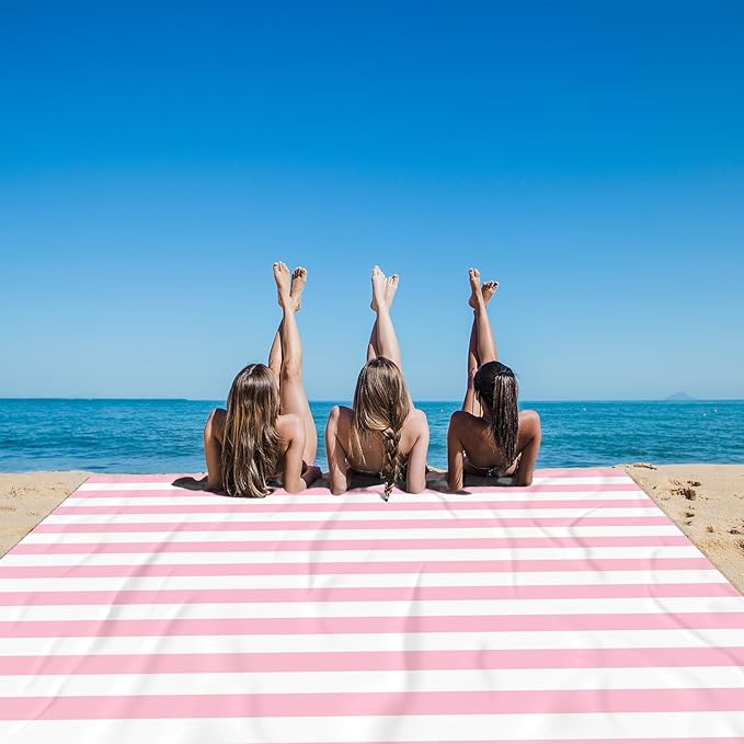 - Outdoor Versatility: Beyond the beach, these versatile outdoor blankets are perfect for travel, picnics, camping, and hiking. With eyecatching pink & white stripe design, you can quick spot these blankets, with a choice of modern minimalist style.