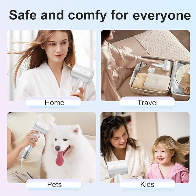 Hair Dryer, XSOOH 110000 RPM High-Speed Brushless Motor Travel Portable Blow Dryer for Curly Straightener Hair, Professional Quiet Small Negative Ionic Hair Dryer with Diffuser and Nozzle