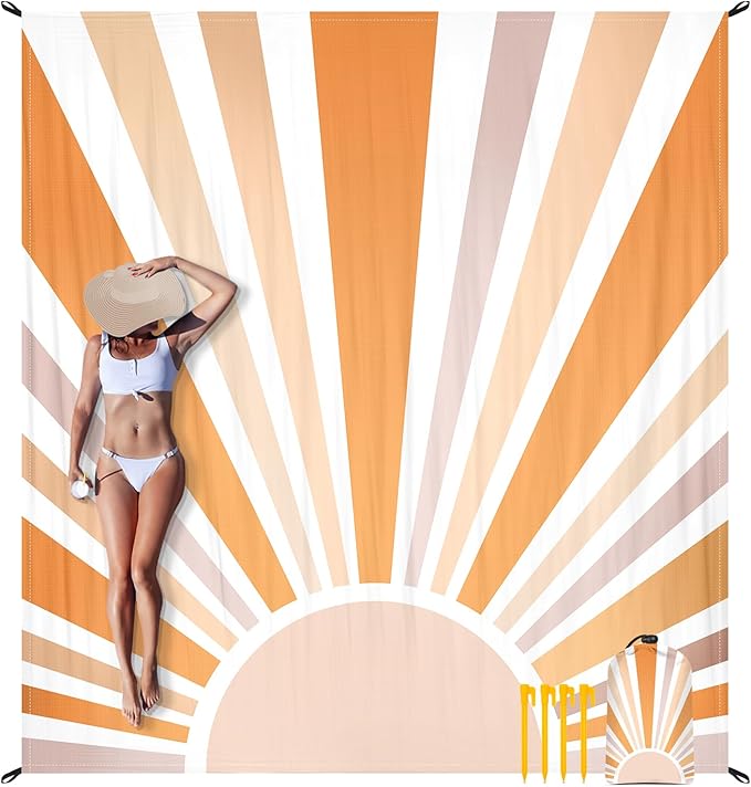 - Bohemian Orange Sun Design: BEW' s boho orange sun burst beach blanket, featuring a stunning boho minimalist design with a geometric abstract sunset print. Embrace the beauty of the sun with this vibrant and eye-catching blanket, perfect for adding a touch of Bohemian style to your beach outings.