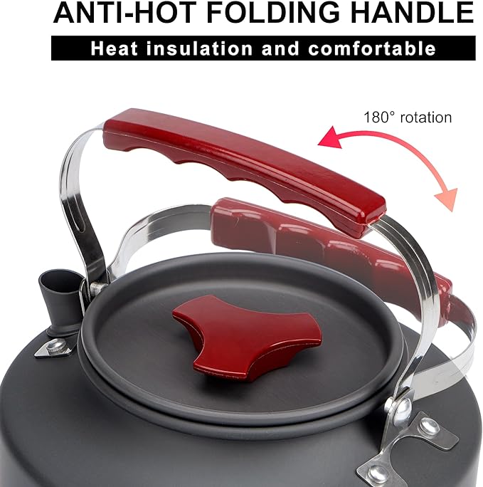 - Easy to Use: The camping kettle features an insulated handle, lid knob for heat protection, spill-resistant spout and a foldable handle, It is compatible with most outdoor stoves but should not be used without water.