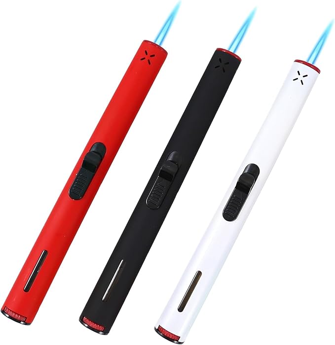 3PC Butane Torch Lighters, 7.9IN Refillable Torch Lighter Adjustable Jet Flame Butane Lighter Long Pen Lighter for Grill BBQ Candle Camping (Gas Not Included)