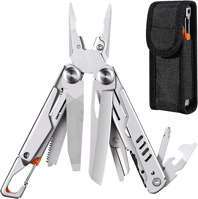 15-in-1 Multitool - Stainless Steel Pocket Knife with Nylon Sheath, Utility Tool for Camping, Hiking, and More, Multi-Functional Design with Secure Locking and Ergonomic Grip