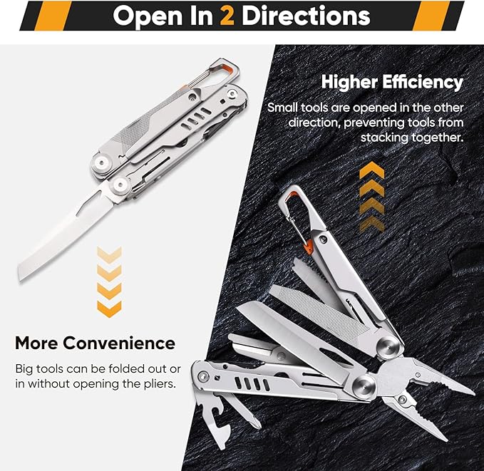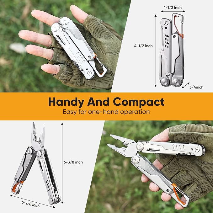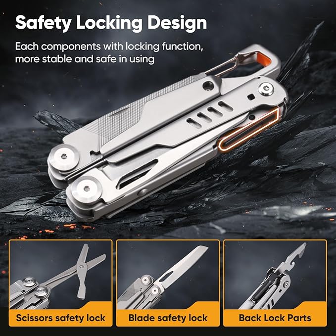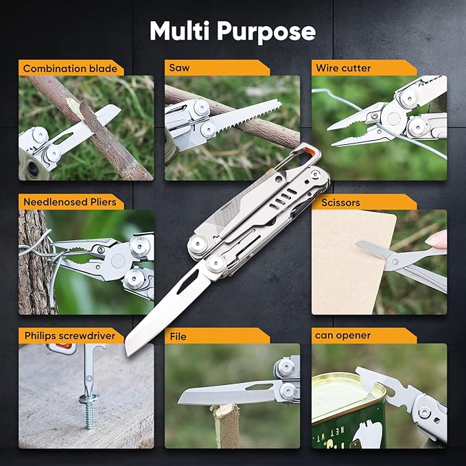 - Superior Quality: Made from durable stainless steel, this multitool is built to last. The sharpness of the blades ensures precision cutting, while the secure locking mechanism provides added safety during use. Its portable design allows you to take it anywhere, making it a reliable companion for all your adventures.