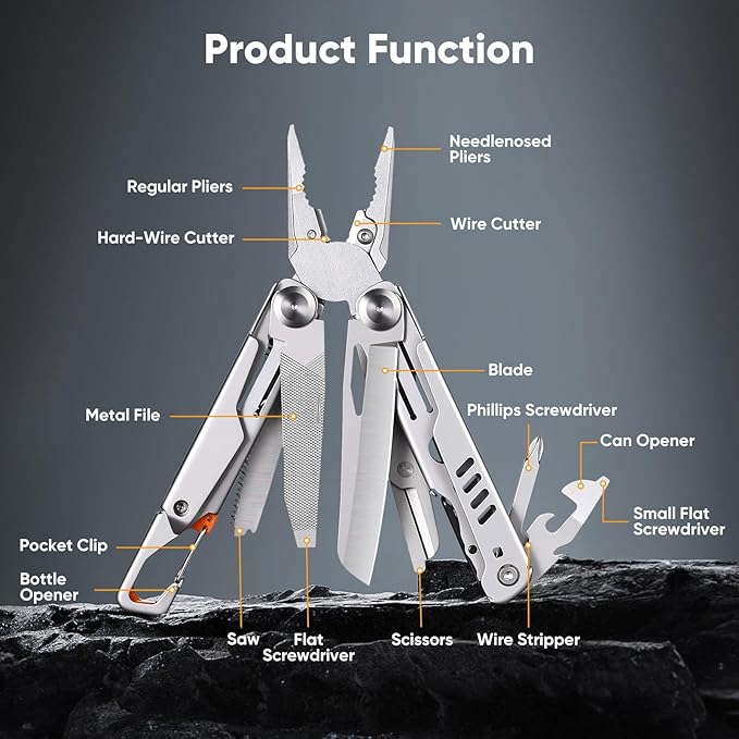 - All-in-One Solution: Whether you need a screwdriver, pliers, knife, or any other tool, the HTAIAYM multitool has you covered. From camping essentials to everyday repairs, this multipurpose tool is a versatile and reliable option for anyone seeking.