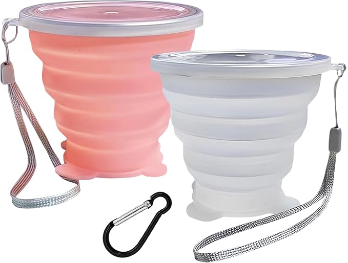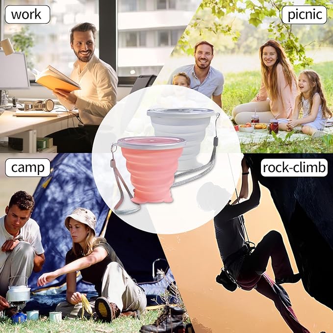 - Collapsible Cup, Silicone Collapsible Travel Cup, Expandable Folding Camping Drinking Cup with Lids Reusable Small Portable Mugs Cup for Travel, Camping, Hiking, Beach, Holiday Vacation, Outdoor Sports