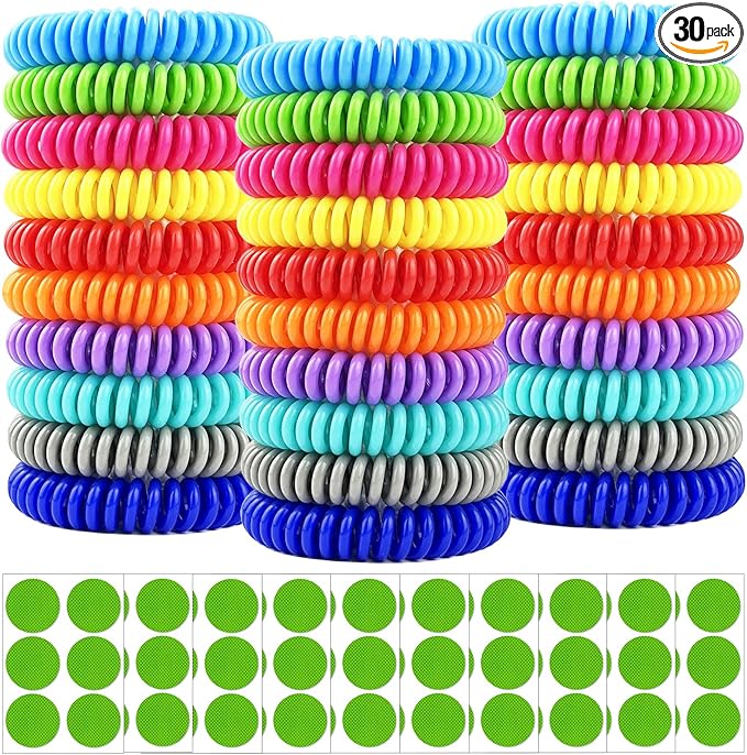 - Long Lasting Protection: This economical set contains 30 pack individually wrapped mosquito bracelets and 60 pcs mosquito patches. Each bracelet will protect you last UP to 350hrs and each patch will stay effective for 24hrs. Enough to protect a whole family from mosquitoes in all aspects in hot summer.