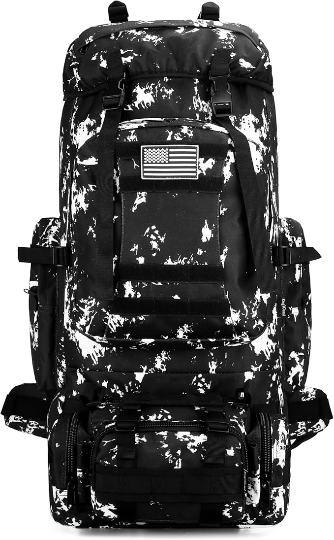 King'sGuard 100L Camping Hiking Backpack Molle Rucksack Military Camping Backpacking Daypack (Black Lighting)